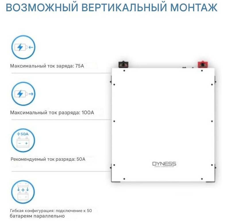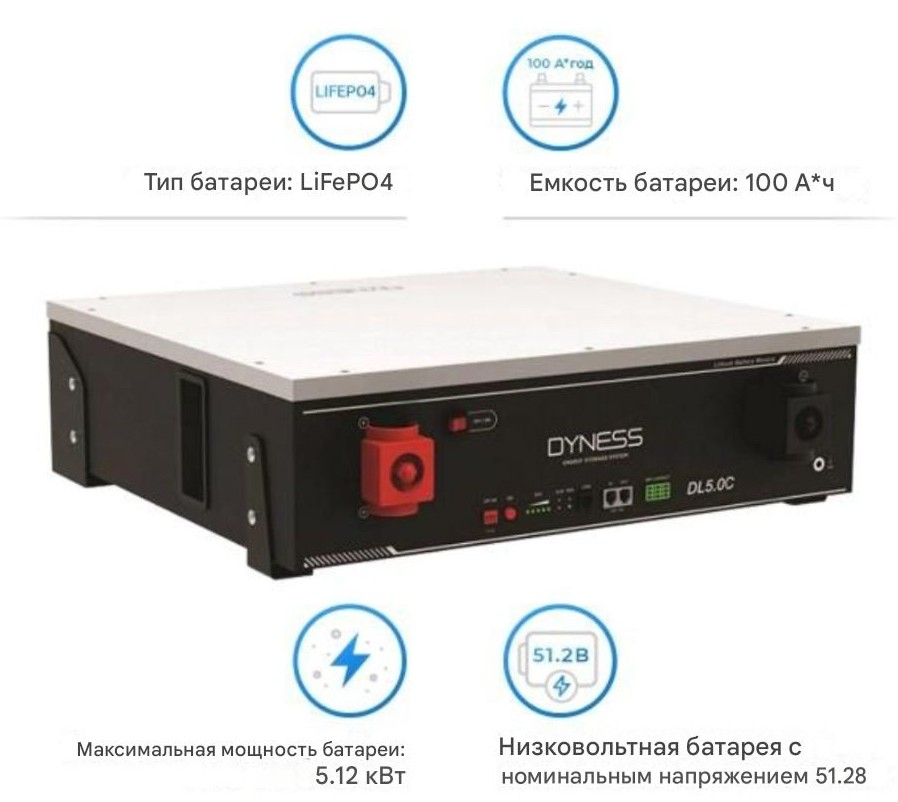 Батарея Dyness DL5.0C имеет встроенную систему управления BMS. Это позволяет контролировать напряжение, ток, состояние заряда, балансировать зарядный ток между ячейками.