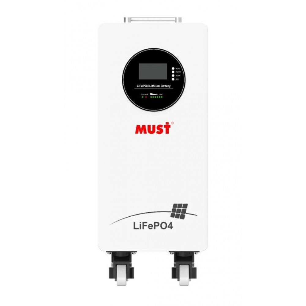 MUST LP21-48300 – літієвий LiFePO4 акумулятор, з робочою напругою 51,2 В, номінальною ємністю 300 А-годин та потужністю 15’360 кВт-годин, спеціально розроблений для житла та офісів, має високу продуктивність та сумісний із інверторами MUST.