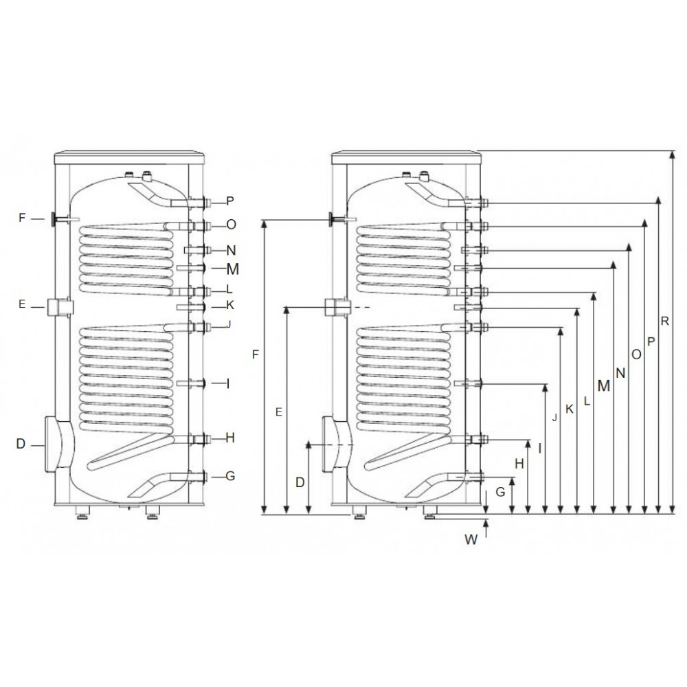 NIBE BA-ST 9022-2FE - це компактний, емальований побутовий циліндр для гарячої води об'ємом 200 літрів, призначений для роботи з тепловими насосами та двома джерелами тепла. Оснащений двома спіральними котушками, він забезпечує ефективне нагрівання та зберігання гарячої води в системах опалення на основі відновлюваних джерел енергії та класичних котлів центрального опалення.
