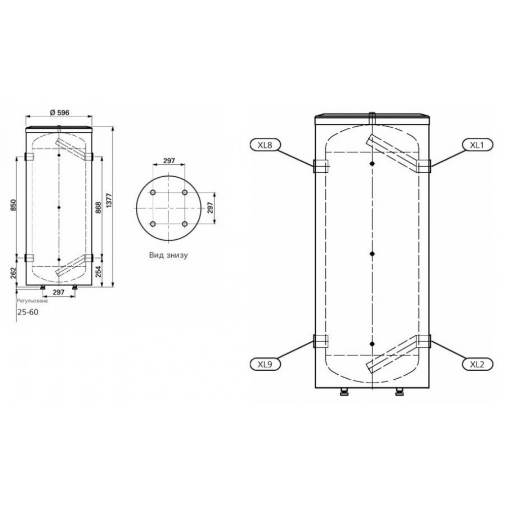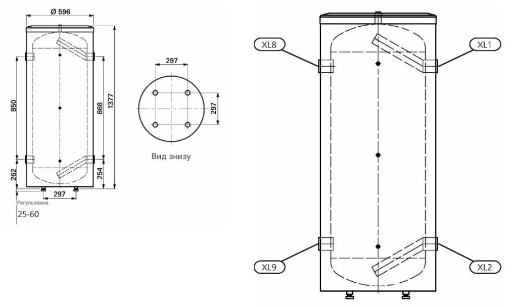 - XL9 Підключення до теплового насоса: G2" внутр.