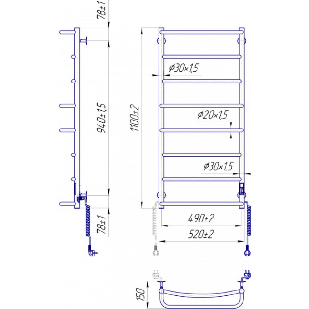 Электрический полотенцесушитель Марио Люкс HP-I 1090x530 TR K изготовлено из нержавеющей стали. Номинальная мощность полотенцесушителя 145 W, состоит из 8 ребер. Максимальная температура нагрева 55°C. Для экономии электроэнергии в конструкции предусмотрен таймер на 3 и 6 часов работы, а также регулятор температуры на три положения – 40°С, 45°С и 50°С. Степень пыле-электрозащищенности IP44.
