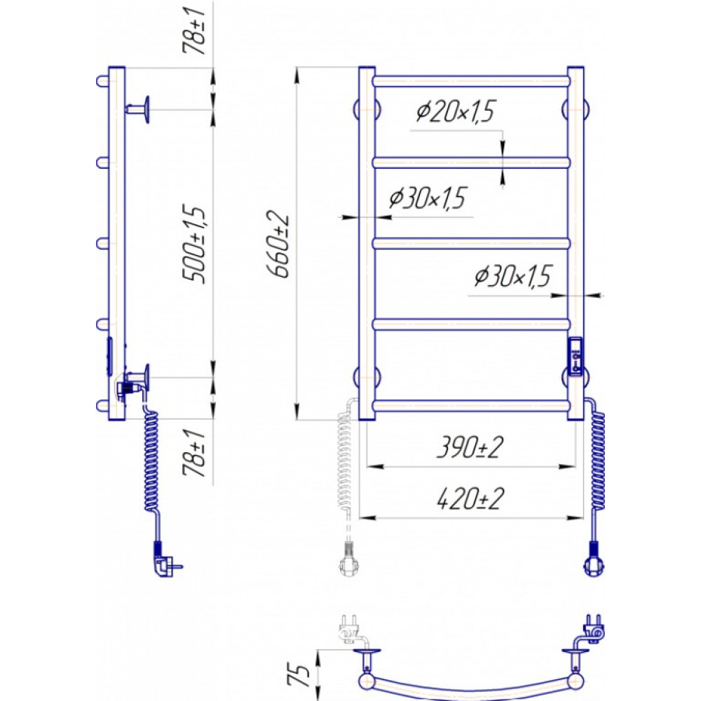 Електрична рушникосушарка Маріо Класік HP-I 650x430 TR K з таймером і регулятором виготовлена з нержавіючої сталі. Номінальна потужність рушникосушки 75 W, складається з 5 ребер. Максимальна температура нагріву 55 ° C. Для економії електроенергії в конструкції передбачений таймер на 3 і 6 годин роботи, а також регулятор температури на три положення - 40 ° С, 45 ° С і 50 ° С. Ступінь пило-електрозахищеності IP44.