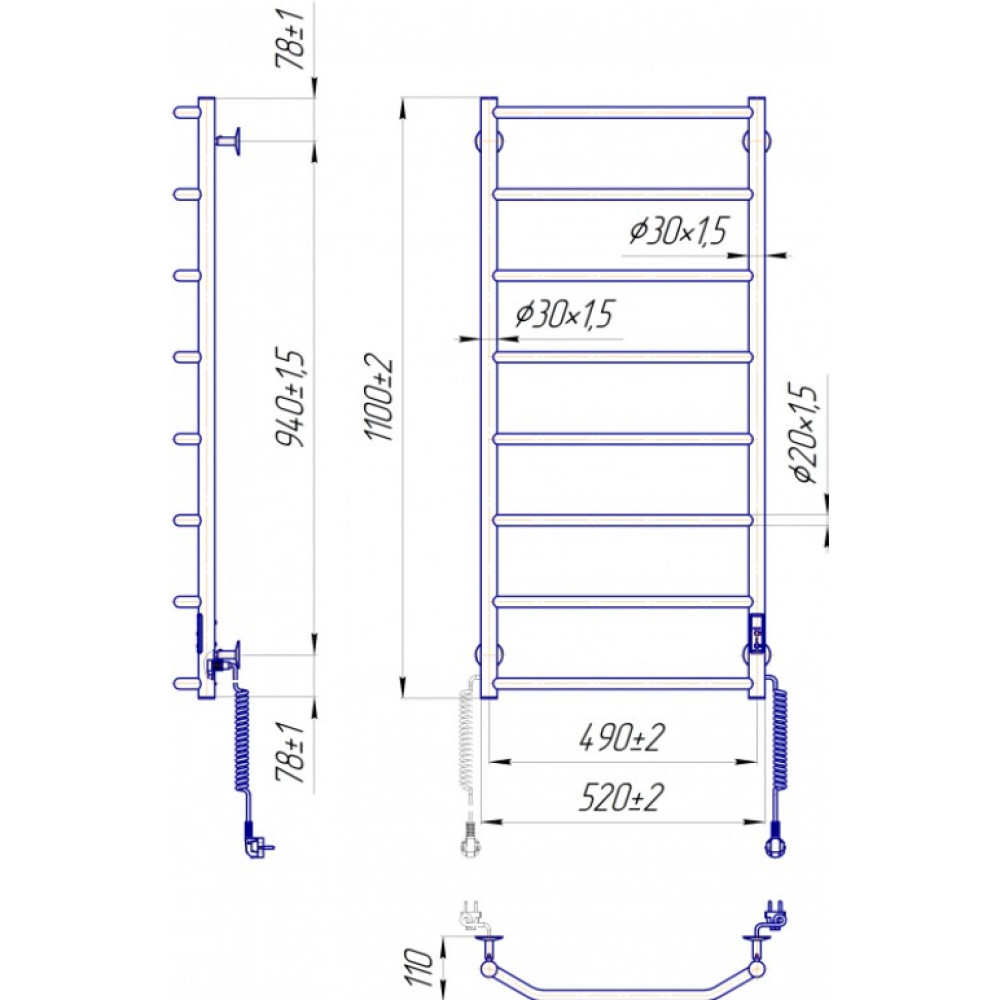 Примітка: Електрична рушникосушка Маріо Трапеція HP-I TR К може бути переобладнана під прихований монтаж (приховане підключення), для цього потрібно додатково придбати Комплект прихованого підключення. Деталі уточнюйте у продавця.