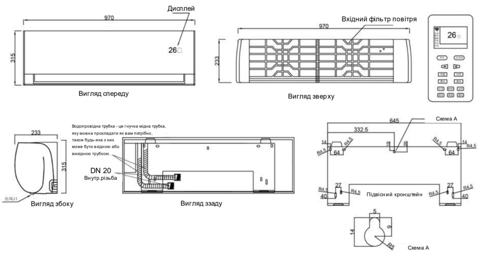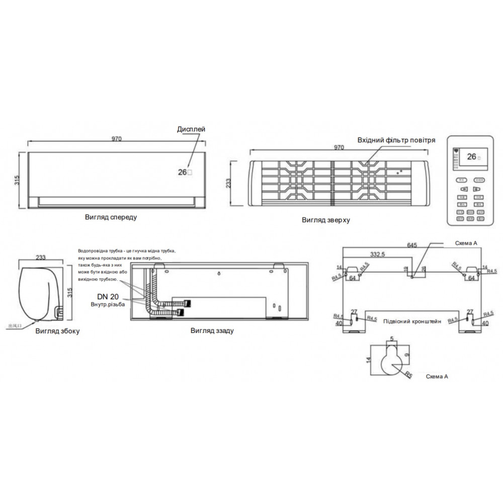 • Примітка: Настінний з вбудованим DC MOTOR inverter двигуном вентилятора, пульт ІЧ, підсвітка LED дисплей, вбудований WI FI