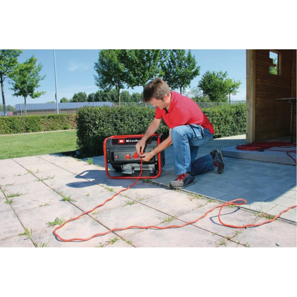 Генератор Einhell TC-PG 25/1/E5 стане практичним помічником там, де поблизу немає розетки. До двох розеток 230 В легко підключити широкий спектр пристроїв. Потужний чотиритактний двигун видає 2100 Вт постійної потужності та номінальний струм 9,1 А при напрузі 230 В. При навантаженні 2/3 генератор працює до 12,5 годин. Генератор працює на бензині, а бак вміщує до 15 л неетильованого бензину/E10.