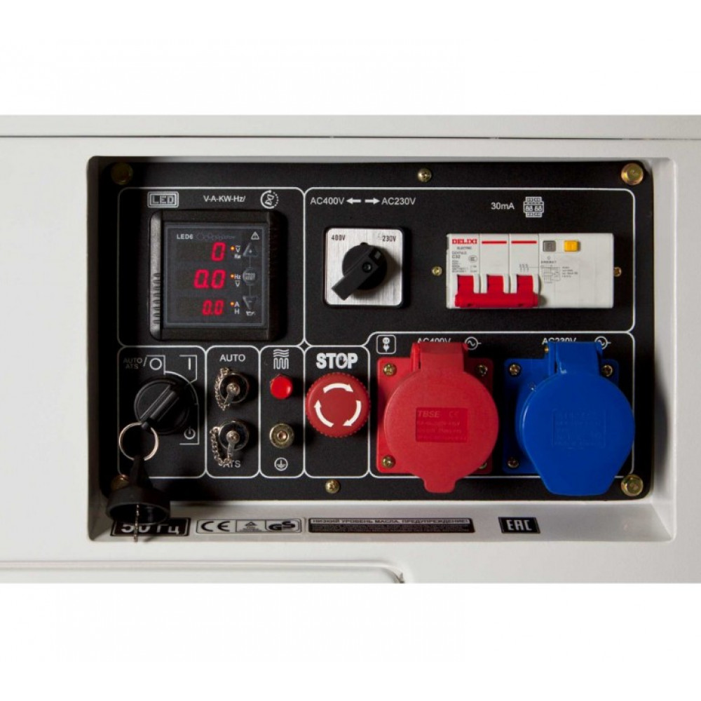 Панель керування генератора - повністю оновлений цифровий дисплей є не тільки інформаційним, а в першу чергу виконує функцію надійного захисту генератора від перевантажень, та захищає під’єднані до генератора споживачі, від таких неприємностей як, стрибки напруги, струму, частоти, навіть попереджує користувача про низький заряд акумулятора.