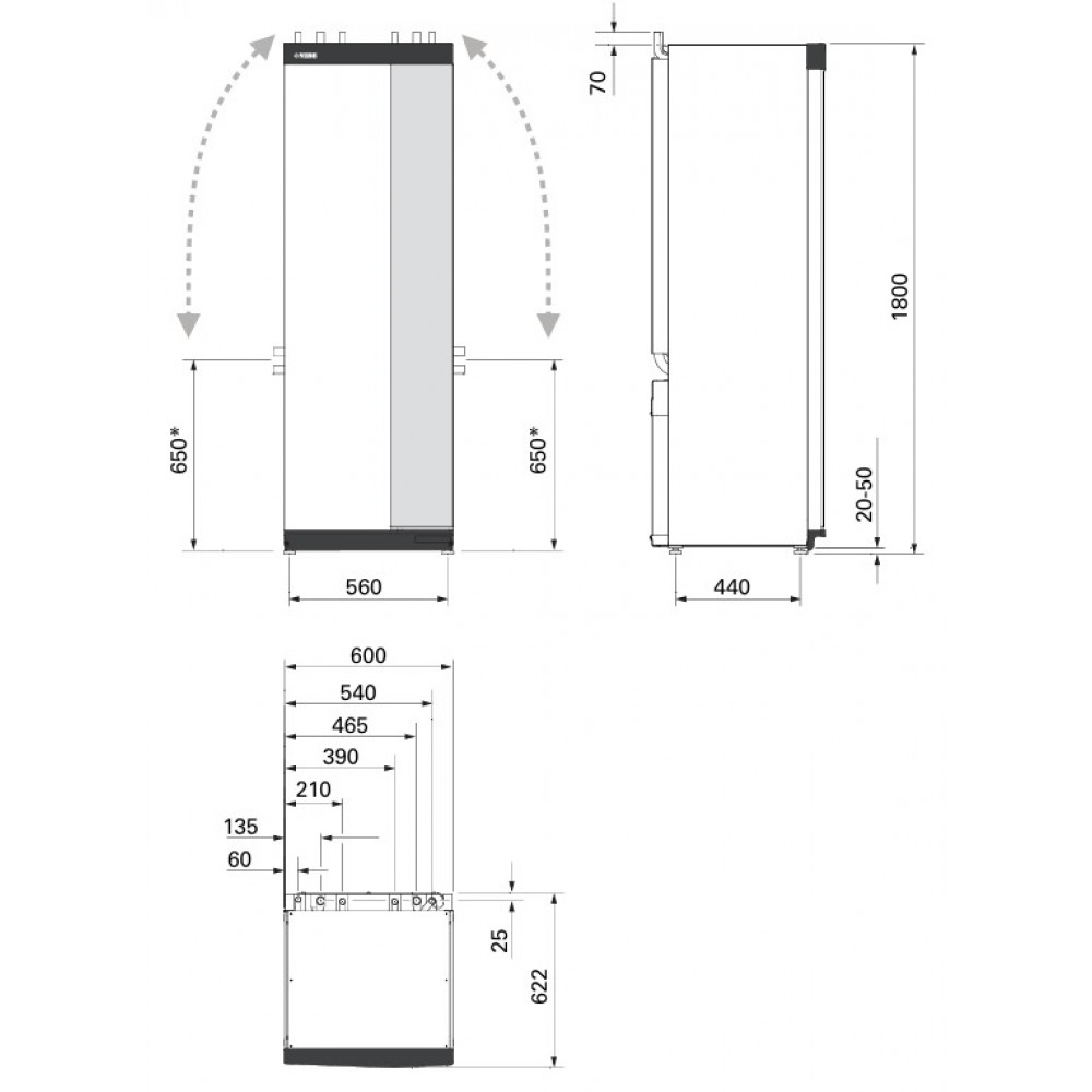 Вбудований бойлер гарячої води об'ємом 180 літрів з функцією швидкого нагрівання, ефективної теплоізоляції з товстого пінополістиролу. Бойлер емальований з електродним захистом та титаново-платиновим анодом.