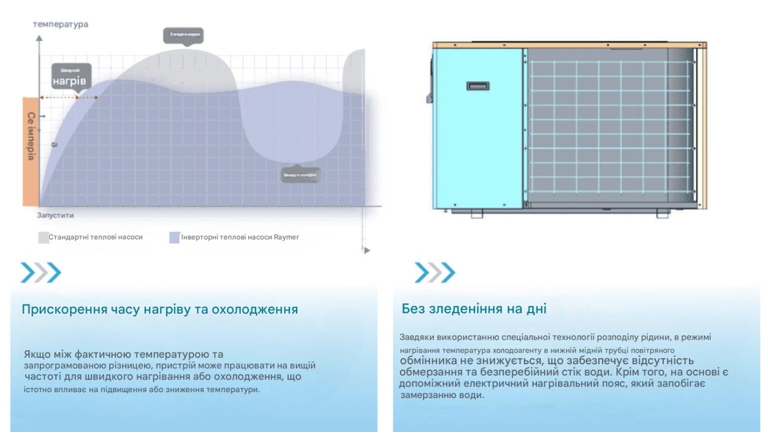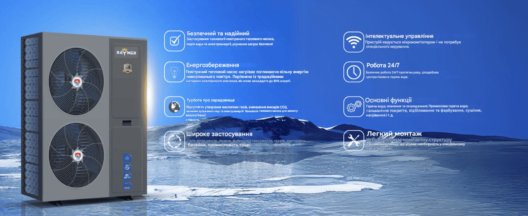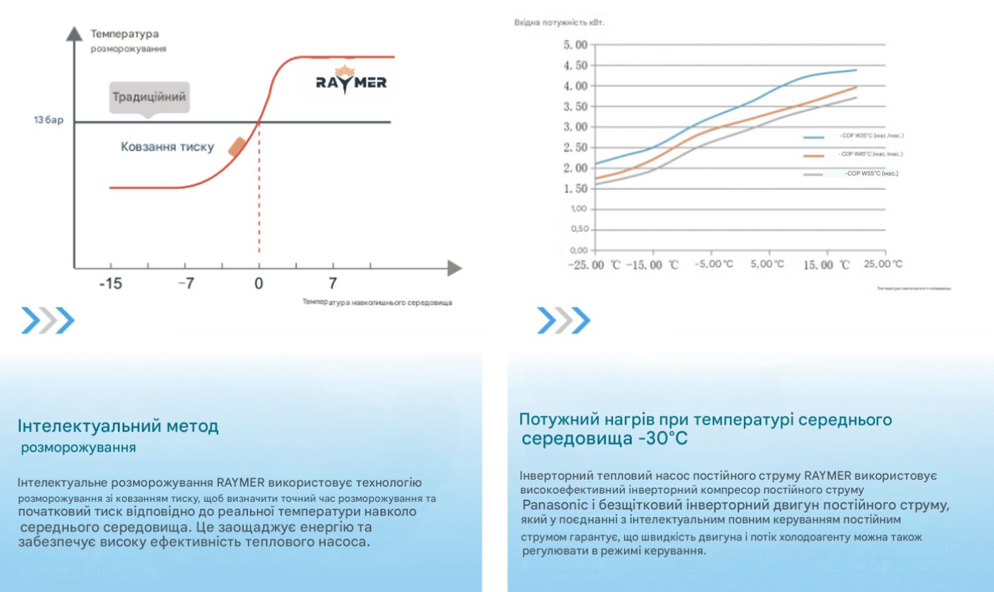 Це обладнання робить Raymer Ray-18D2MN-EVI універсальним та ефективним рішенням для нагріву, охолодження та водопостачання в різних кліматичних умовах.