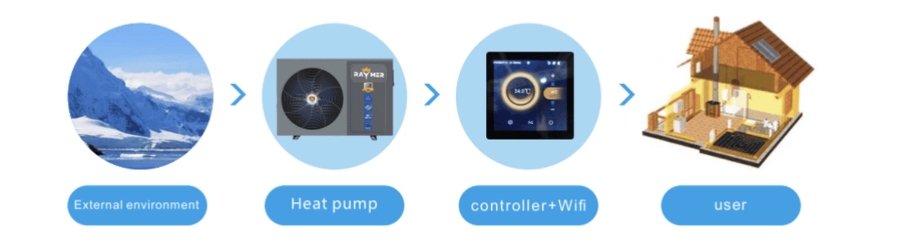 Порівняно з електричними котлами або газовими системами, тепловий насос Raymer дозволяє зменшити витрати на опалення до 80%, що робить його одним із найефективніших рішень для сучасного приватного будинку чи об'єкта комерційної нерухомості.