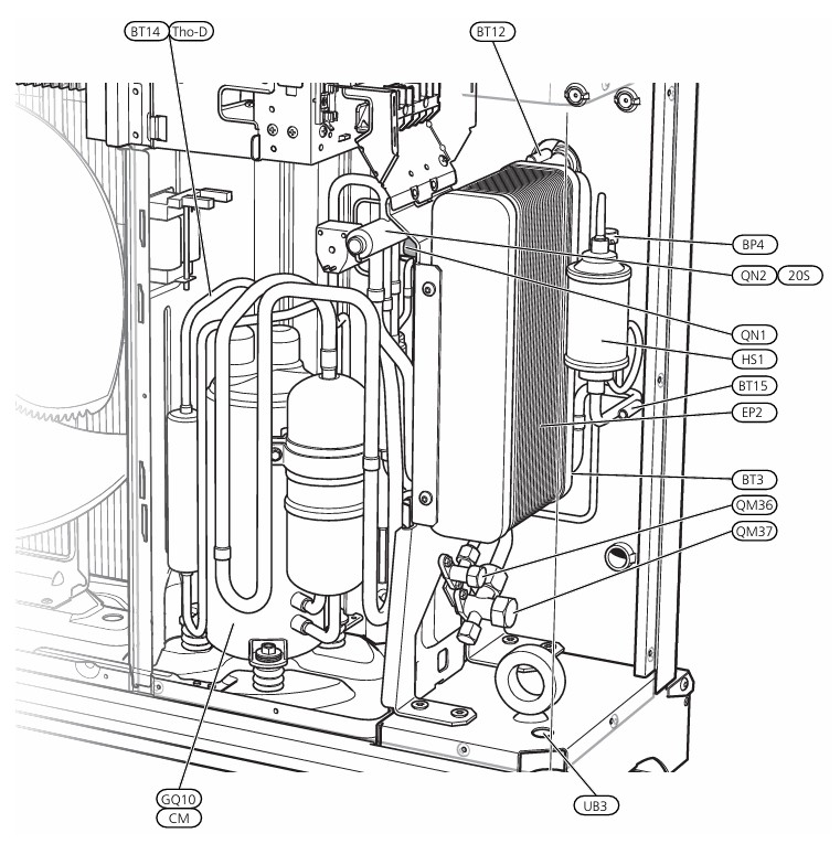 BT12 - Датчик температури, що підводить трубопровід конденсатора