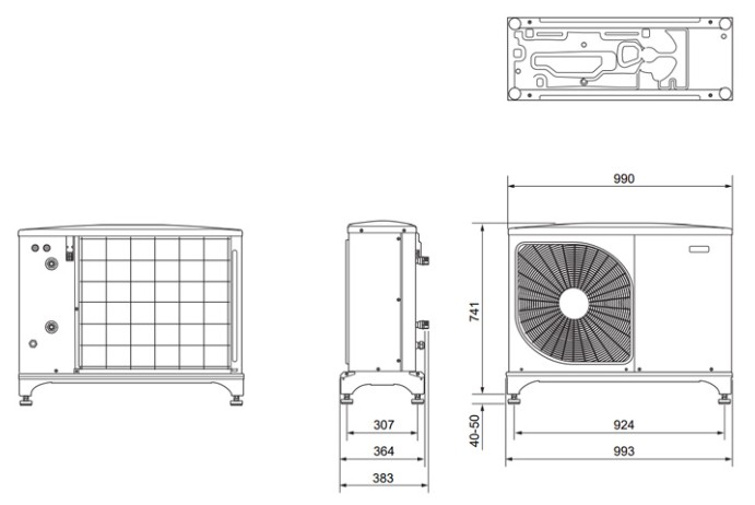 Габарити зовнішнього моноблоку теплого насоса F2040-6: