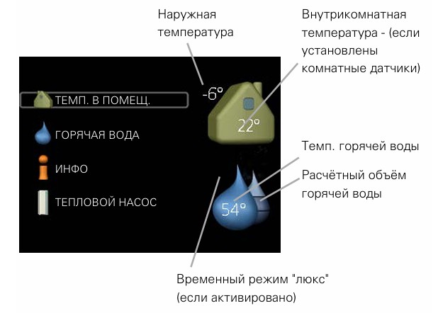На дисплеї відображаються інструкції, установки та оперативна інформація. Можна легко переміщатися за різними меню та параметрами для налаштування рівня комфорту або отримання необхідної інформації.