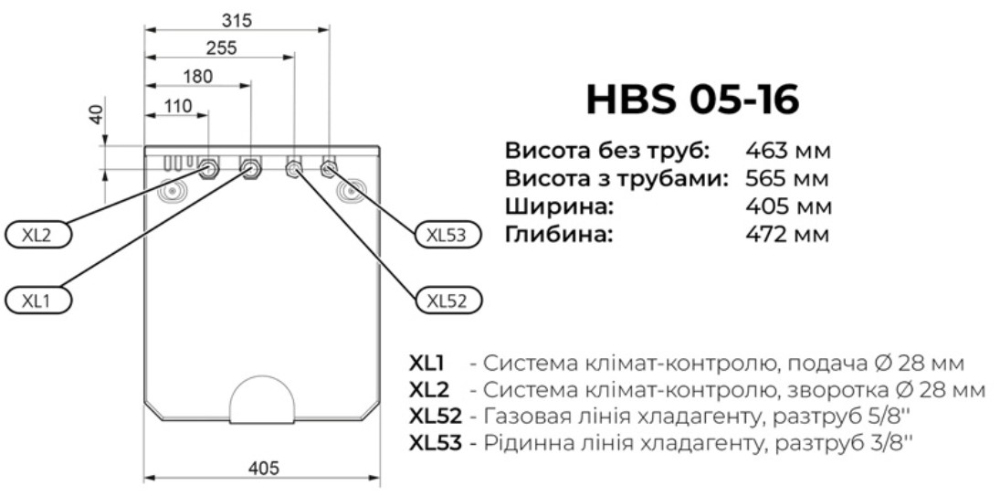 Габарити внутрішнього блоку HBS 05-16: