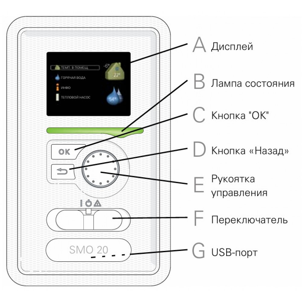 У передній частині модуля управління є дисплей, що використовується для зв'язку з SMO 20.