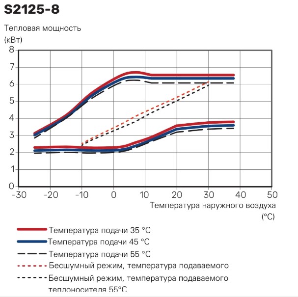 - Максимальна теплова потужність (при температурі на вулиці -4°C та температурі теплоносія 65°C), кВт: 6,7