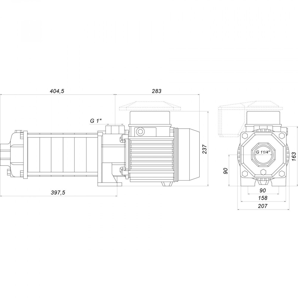 Всасывающего патрубка - 1 1/4", напорного патрубка - 1"