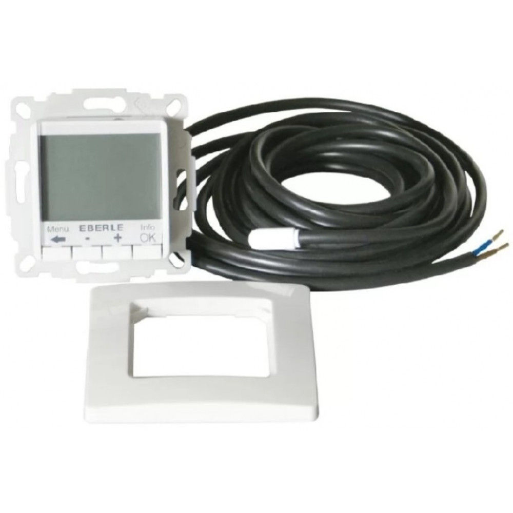 Функционал терморегулятора Eberle Fit 3F предусматривает полезные режимы и программы: отпуск, вечеринку, таймер, блокировку от несанкционированного использования, защиту от замерзания, самодиагностику. В ряде дополнительных возможностей – контроль учета энергопотребления за последние 2 дня/неделя/месяц/год и расчет затрат. Терморегулятор устанавливается в монтажную коробку.
