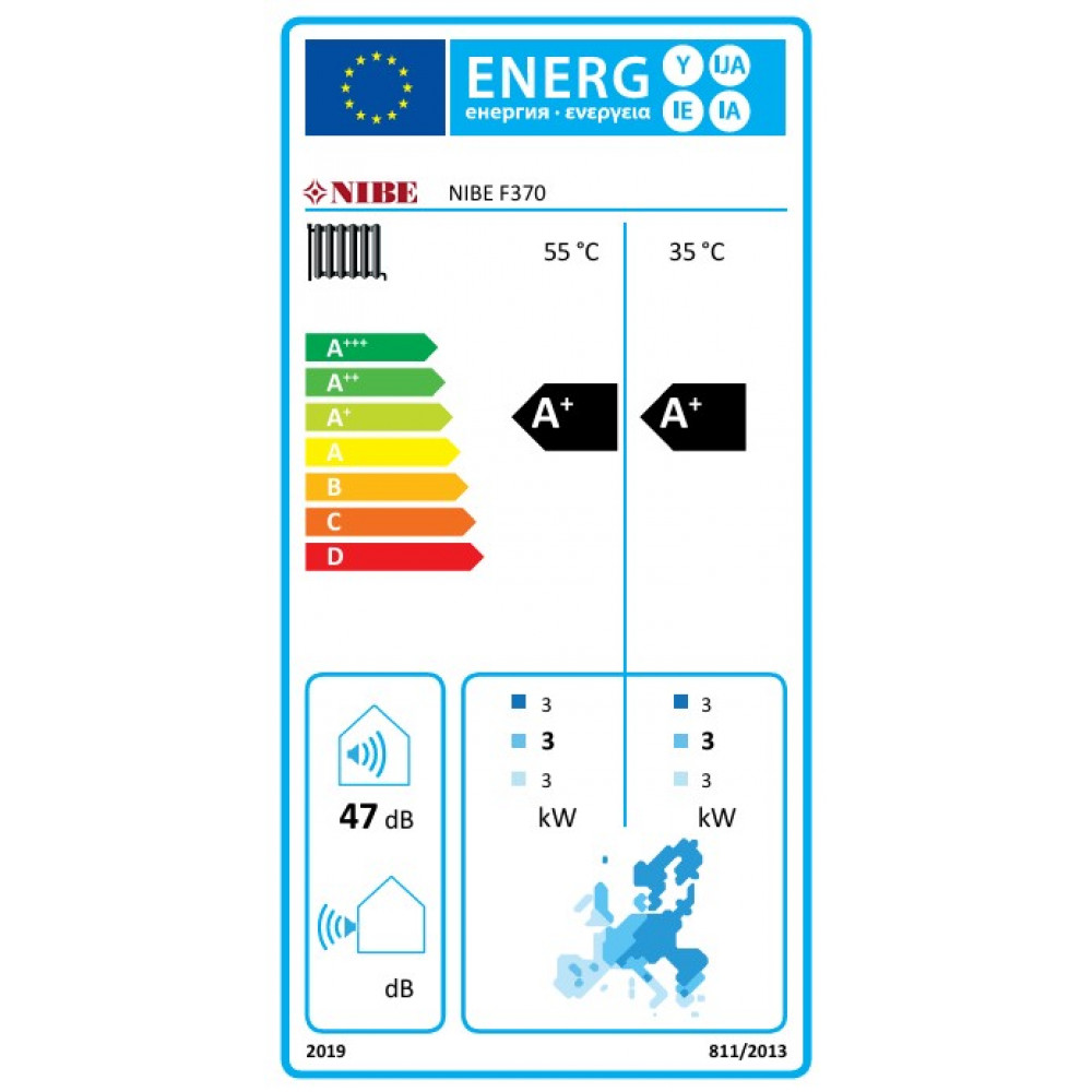 NIBE F370R – рекуператорний тепловий насос з інтелектуальним управлінням. Це повністю укомплектоване повноцінне джерело тепла, яке підходить для опалення, гарячого водопостачання та вентиляції невеликих будівель (з тепловим навантаженням до 10 - 12 кВт). NIBE F370R є бівалентною системою теплопостачання: тепловий насос поєднує в собі рекуперацію тепла повітря системи вентиляції та використання вбудованого ступінчастого електронагрівача. Теплова продуктивність компресорного модуля (Pdesign) 3 кВт. Потужність пікового/аварійного/санітарного ступінчастого електронагрівача становить 10,3 кВт.