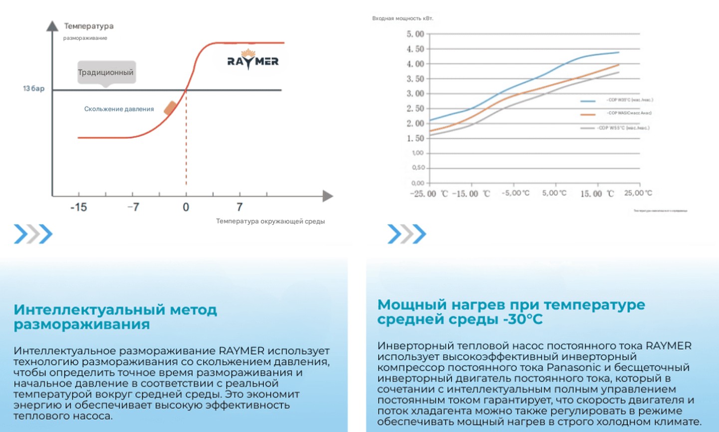 Инверторная технология постоянного тока в компрессоре Panasonic – это современное решение, обеспечивающее высокую эффективность, комфорт и энергосбережение в тепловых насосах. В тепловом насосе Raymer Ray-18D2MN-EVI эта технология полностью реализована, и вот что она дает пользователю: