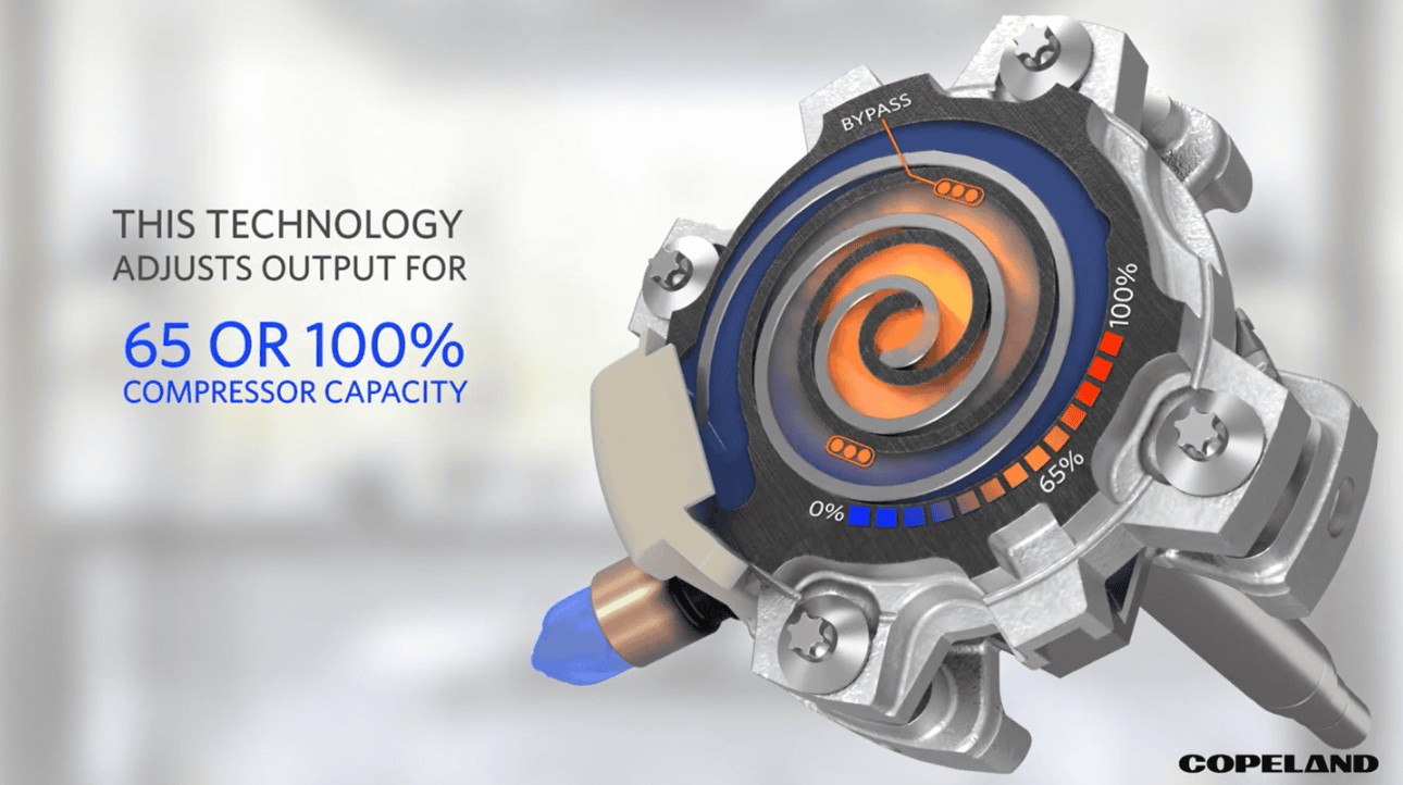 Компресори Copeland Scroll з системою вприскування пари мають додаткову пару впорскувального порту під час роботи, що збільшує виробництво тепла компресора, не змінюючи його об'ємні показники. Основними перевагами цієї технології є зниження температури удару та розширення робочого діапазону, що дозволяє високотемпературній гарячій воді в будь-яких умовах експлуатації.