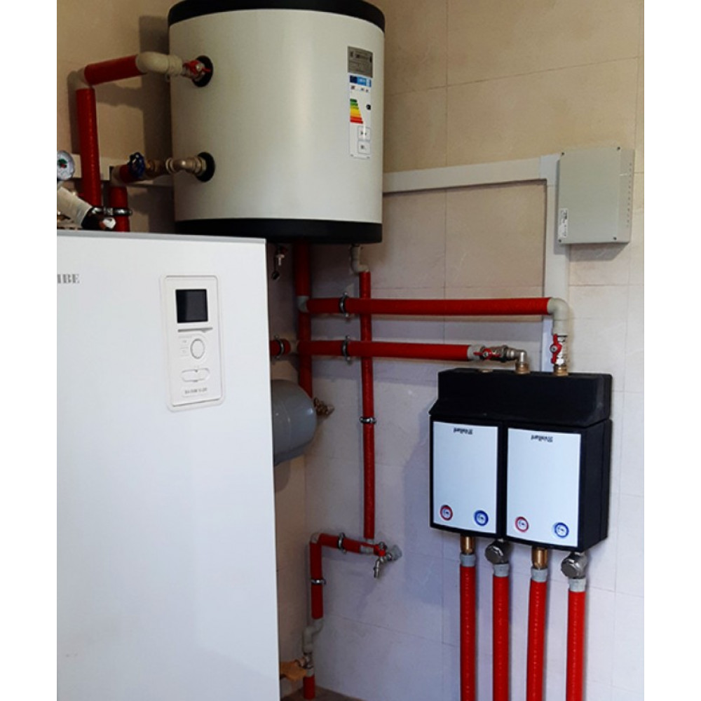 Розумний внутрiшнiй модуль з вбудованим бойлером побутової гарячої води, що разом з тепловим насосом NIBE типу повітря/вода утворюють комплект забезпечення будiвлi теплом та гарячою водою. Модуль оснащений ємнісним бойлером нагріву гарячоï побутової води об'ємом 180 літрів, електричним нагрівачем, групою безпеки, манометром, розширювальним баком, циркуляцiйним насосом з частотним регулюванням та теплообмінником фреон/вода.