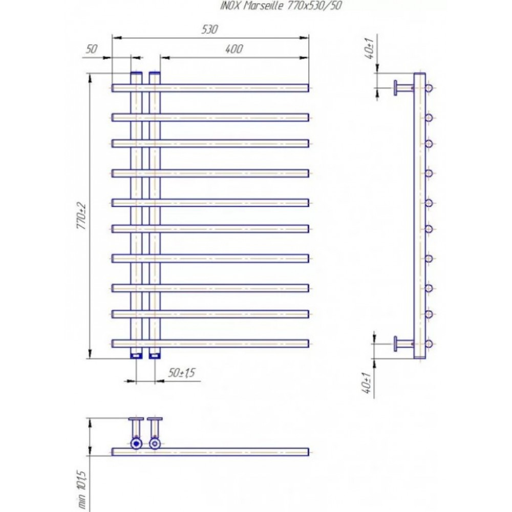 Водяна рушникосушка Mario Марсель INOX 770x530/50