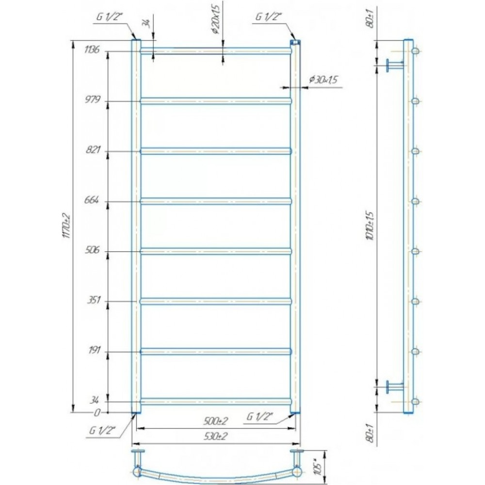 Водяной полотенцесушитель Mario INOX Классик HP 1170х530/500