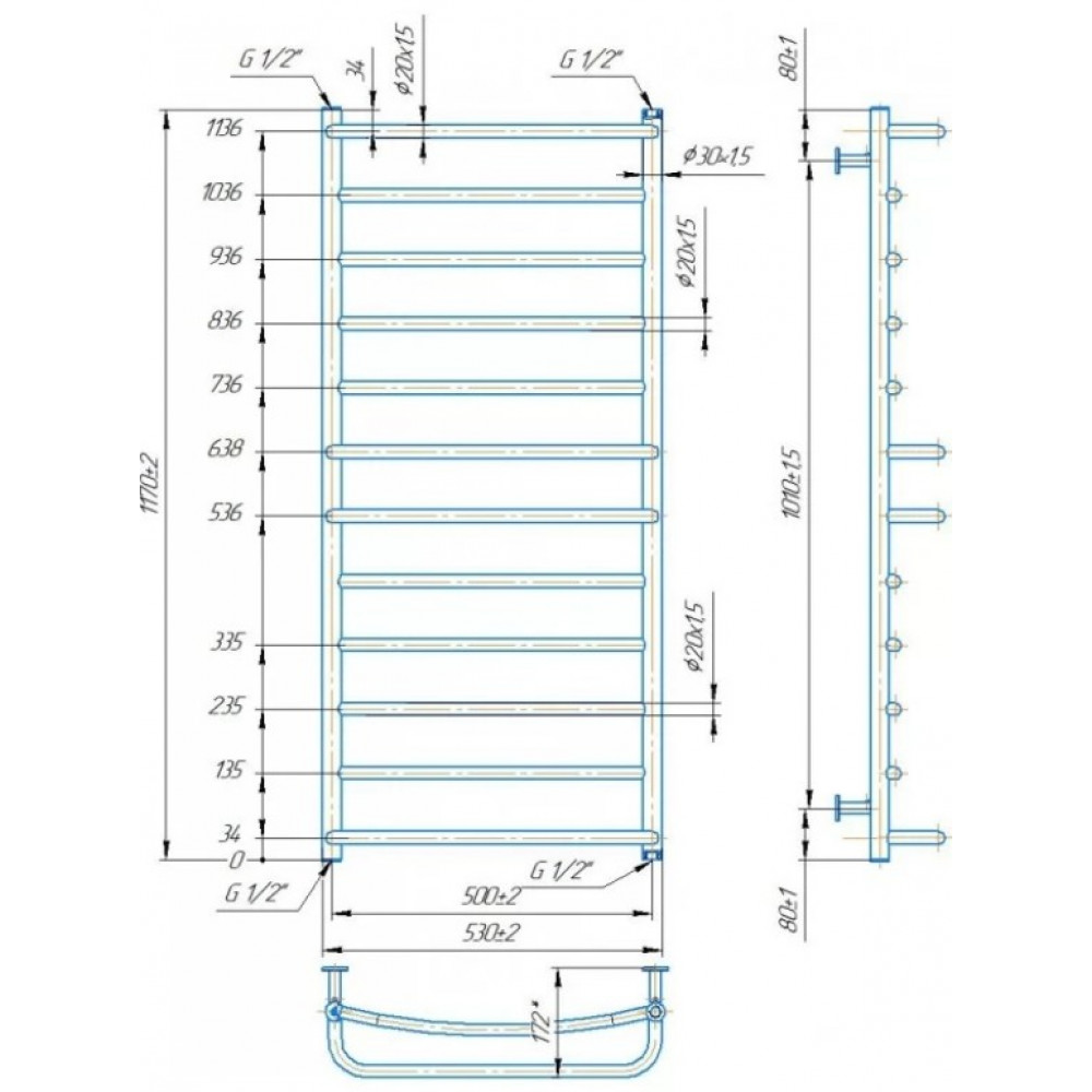 Водяной полотенцесушитель Mario INOX Люкс 1170х530/500