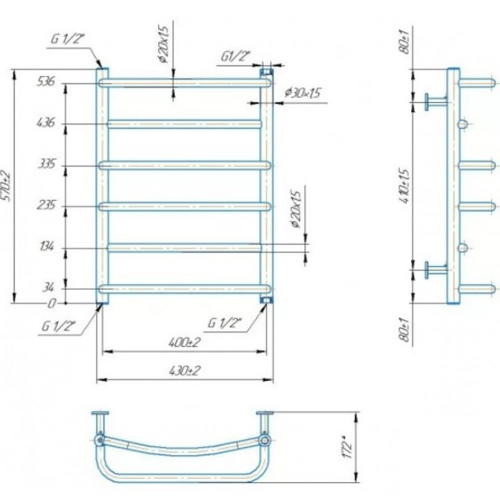 Водяной полотенцесушитель Mario INOX Люкс 570х430/400