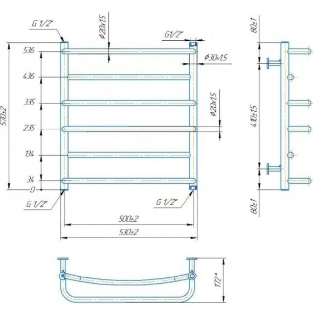 Водяной полотенцесушитель Mario INOX Люкс 570х530 несмотря на относительно небольшие размеры, отличается функциональностью и удобством в использовании благодаря выступающим 4-м П-образным ребрам в конструкции изделия. Данная модель имеет в высоту 570 мм, в ширину – 530 мм, 500 мм – межцентровое расстояние, а диаметр подключения G 1/2''. Водяное полотенцесушитель Люкс 570 на 530 выполнен из европейской нержавеющей стали марки AISI 304. Выступающие ребра позволяют одновременно сушить несколько полотенец или вещей. Очень часто покупатели устанавливают полотенцесушитель Люкс в ванной комнате над стиральной машиной.