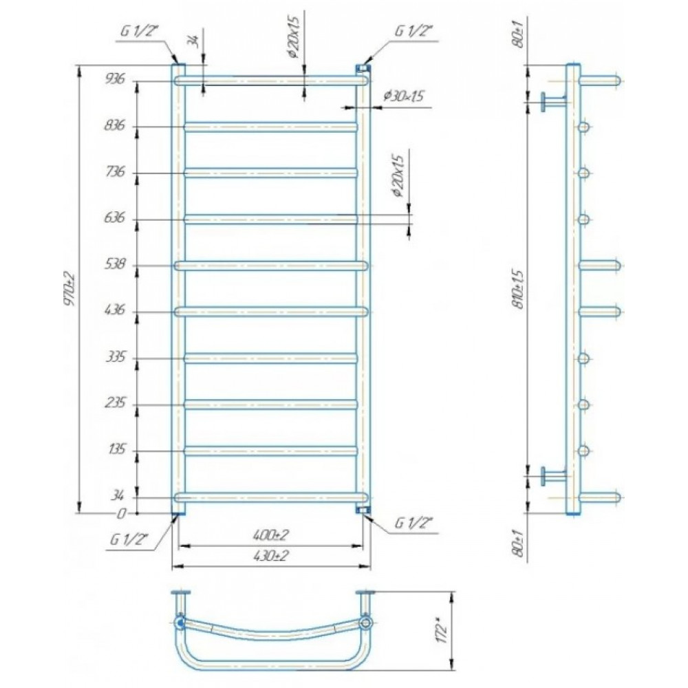 Водяной полотенцесушитель Mario INOX Люкс 970х430/400